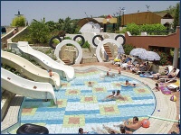 In der großen Gartenanlage befinden sich ein Swimmingpool mit Wasserrutschen und Kinderpool sowie eine Open-Air-Diskothek.